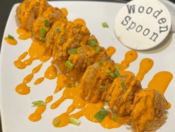 Eight fresh shrimp, hand battered, deep fried then topped with our tasty Buffalo sauce