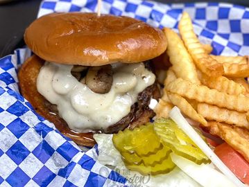 Juicy patty,swisscheese, mushrooms with mayo served on brioche bun