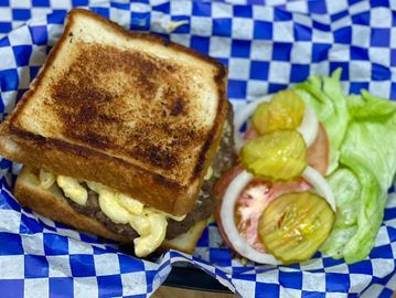 Juicy patty served with a helping of our house made mac-n-cheese served on Texas toast. Lettuce, tomato, pickle and onion upon request