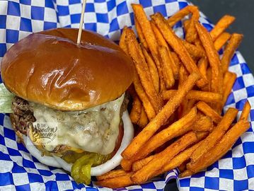 All burgers served with french fries. SUBSTITUTE Onion Rings or Sweet Potato Fries for additional $1.99