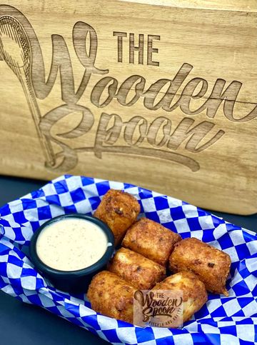 Cheesy mac n cheese, lightly breaded and served with house Ranch